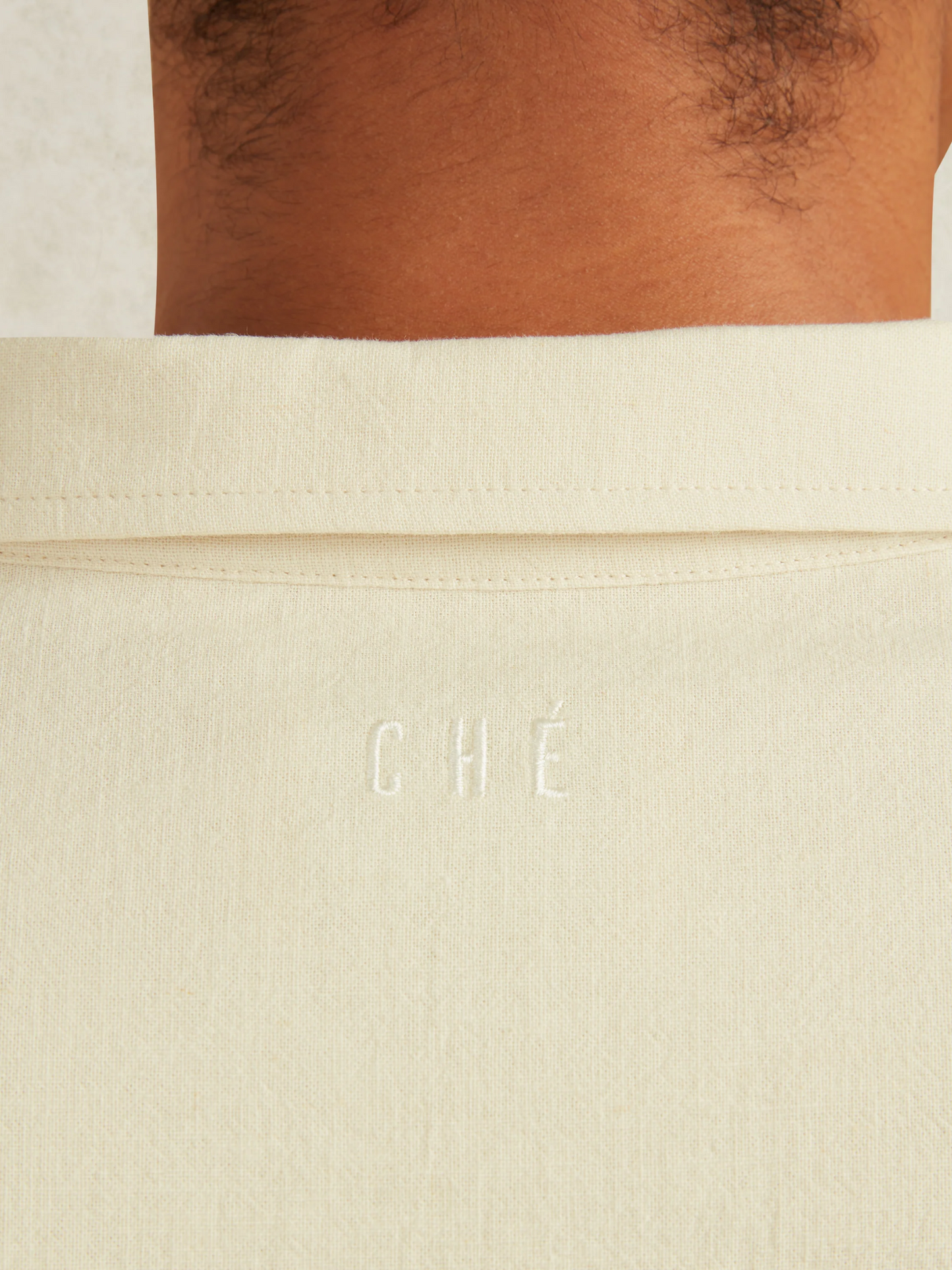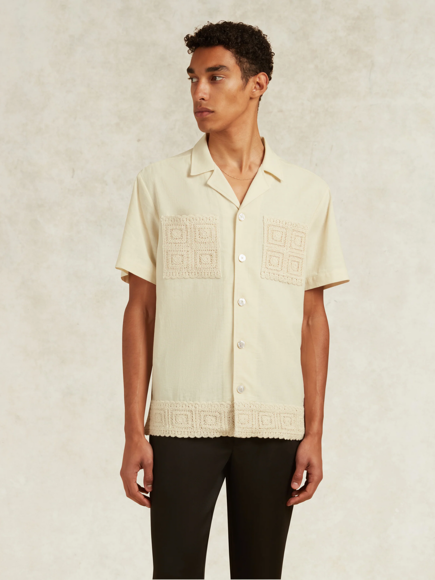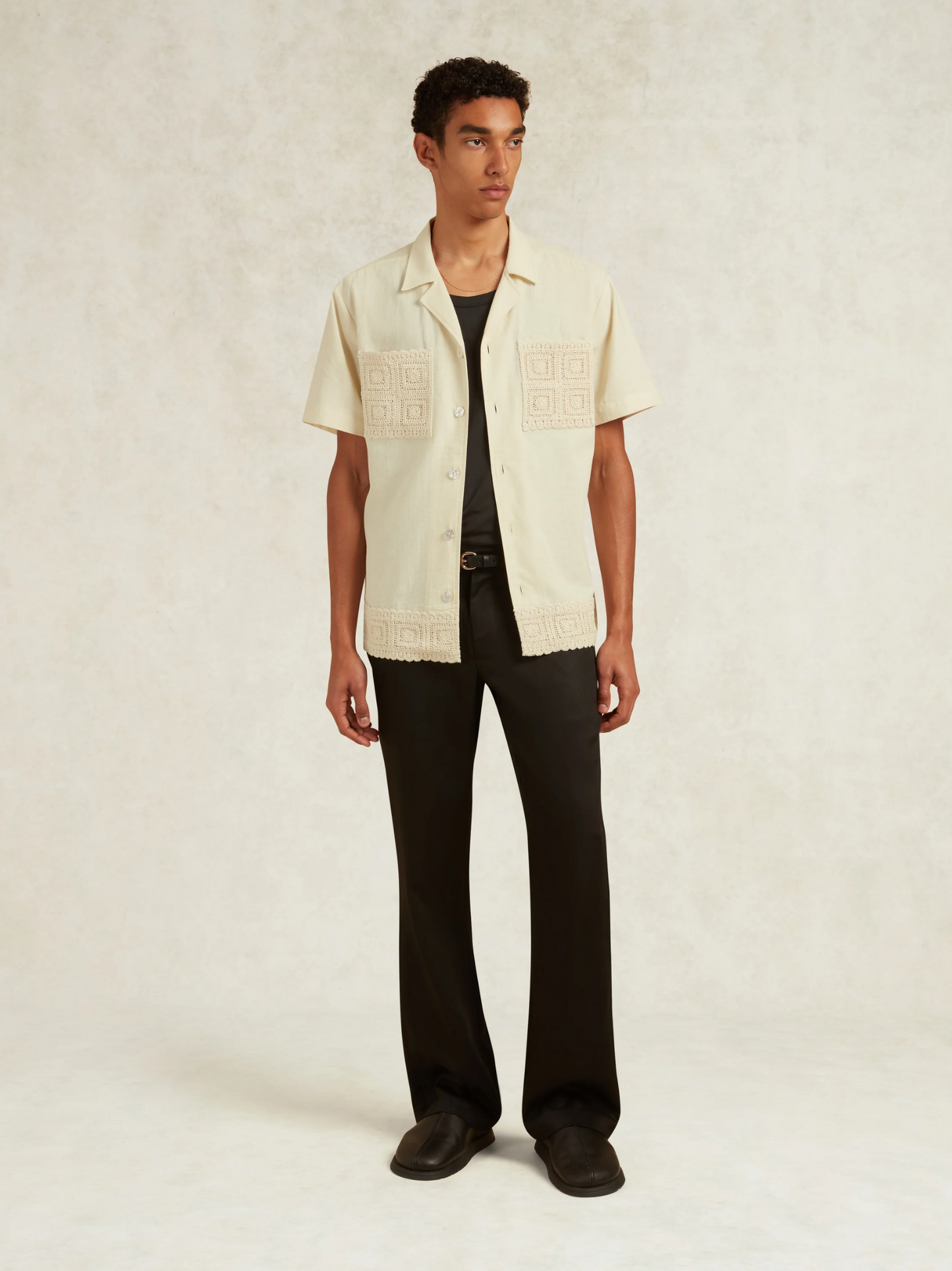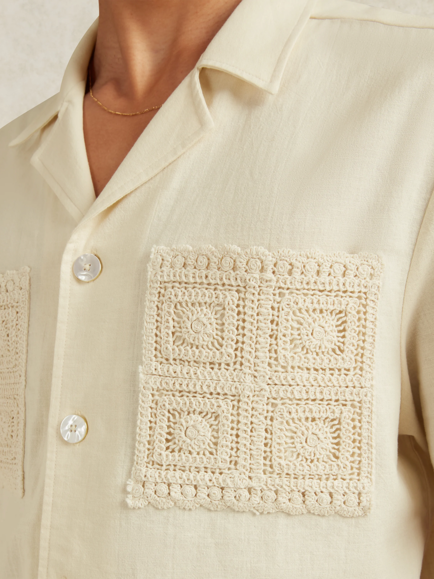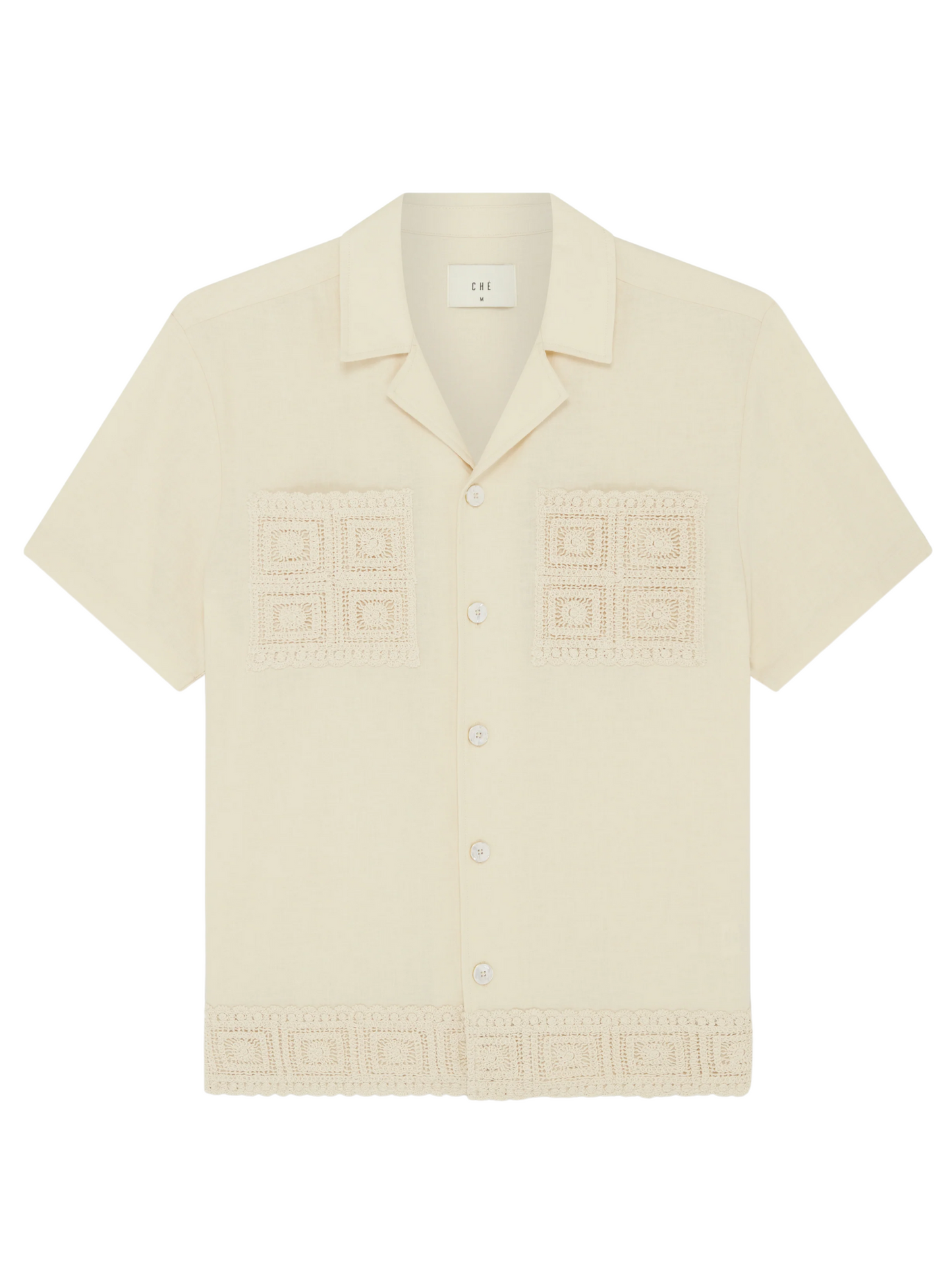 CHÉ Inigo Linen Blend Crochet Detail Shirt Ivory