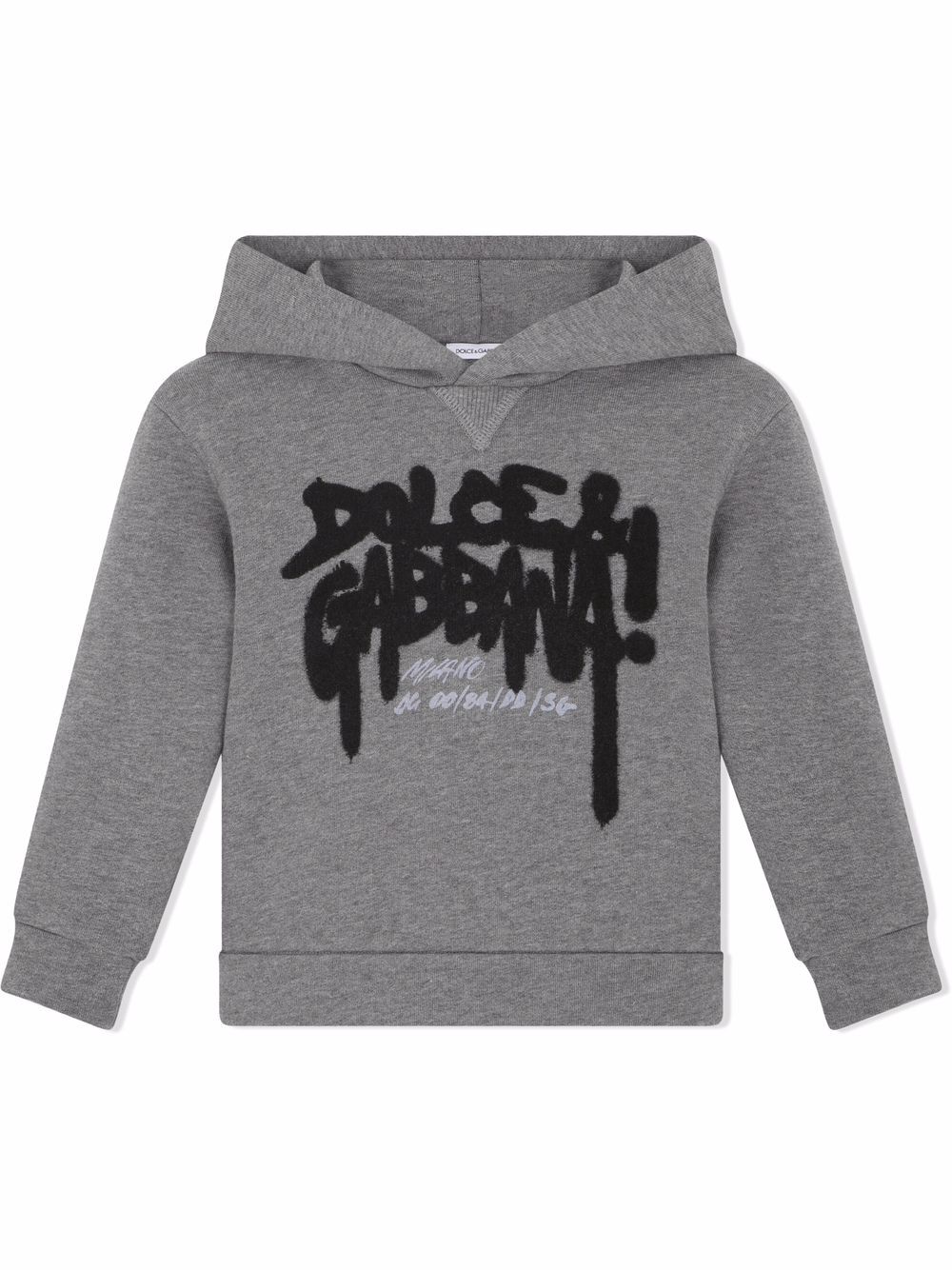 DOLCE & GABBANA KIDS Graffiti logo-print cotton hoodie Grey