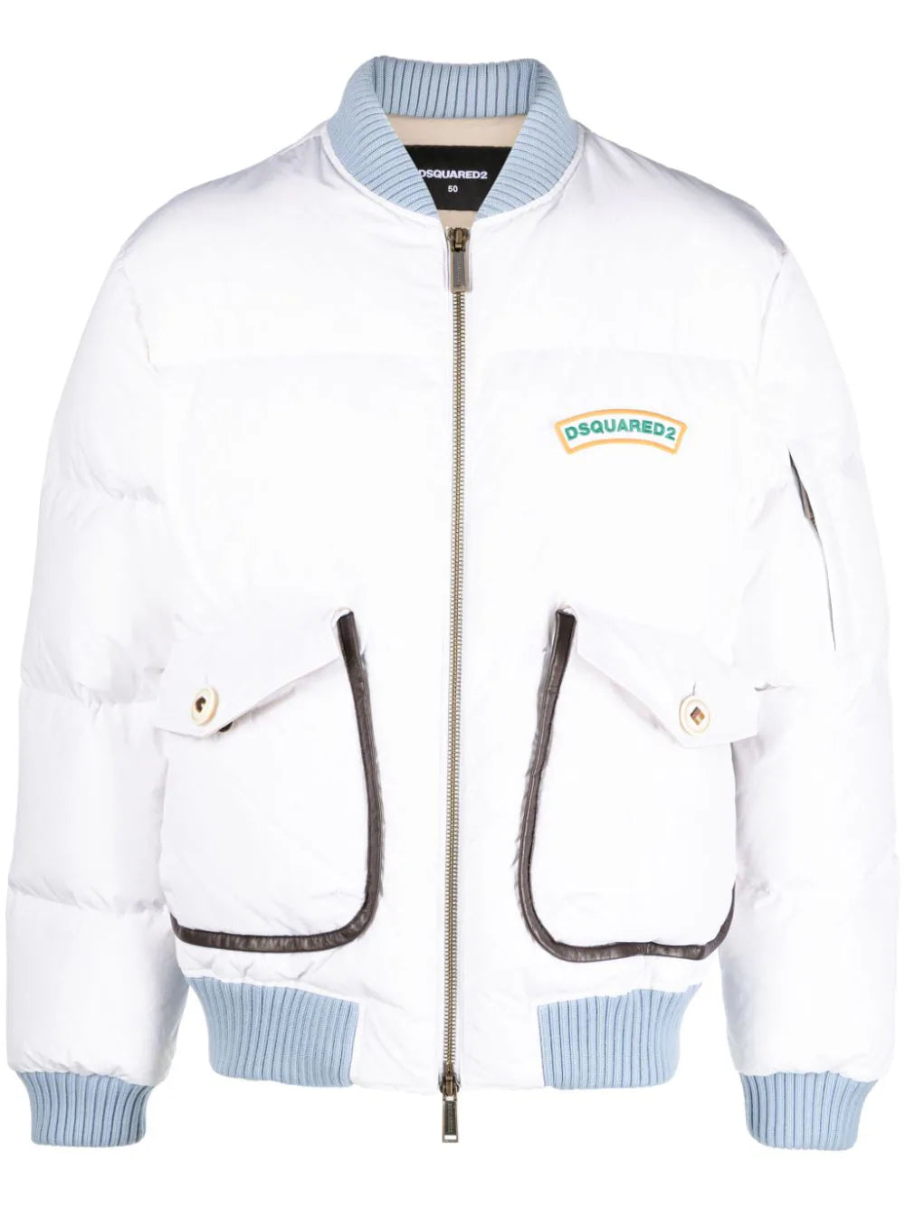 DSQUARED2 Mother Fluff Puff Slim Fit Bomber Sports Jacket White Blue