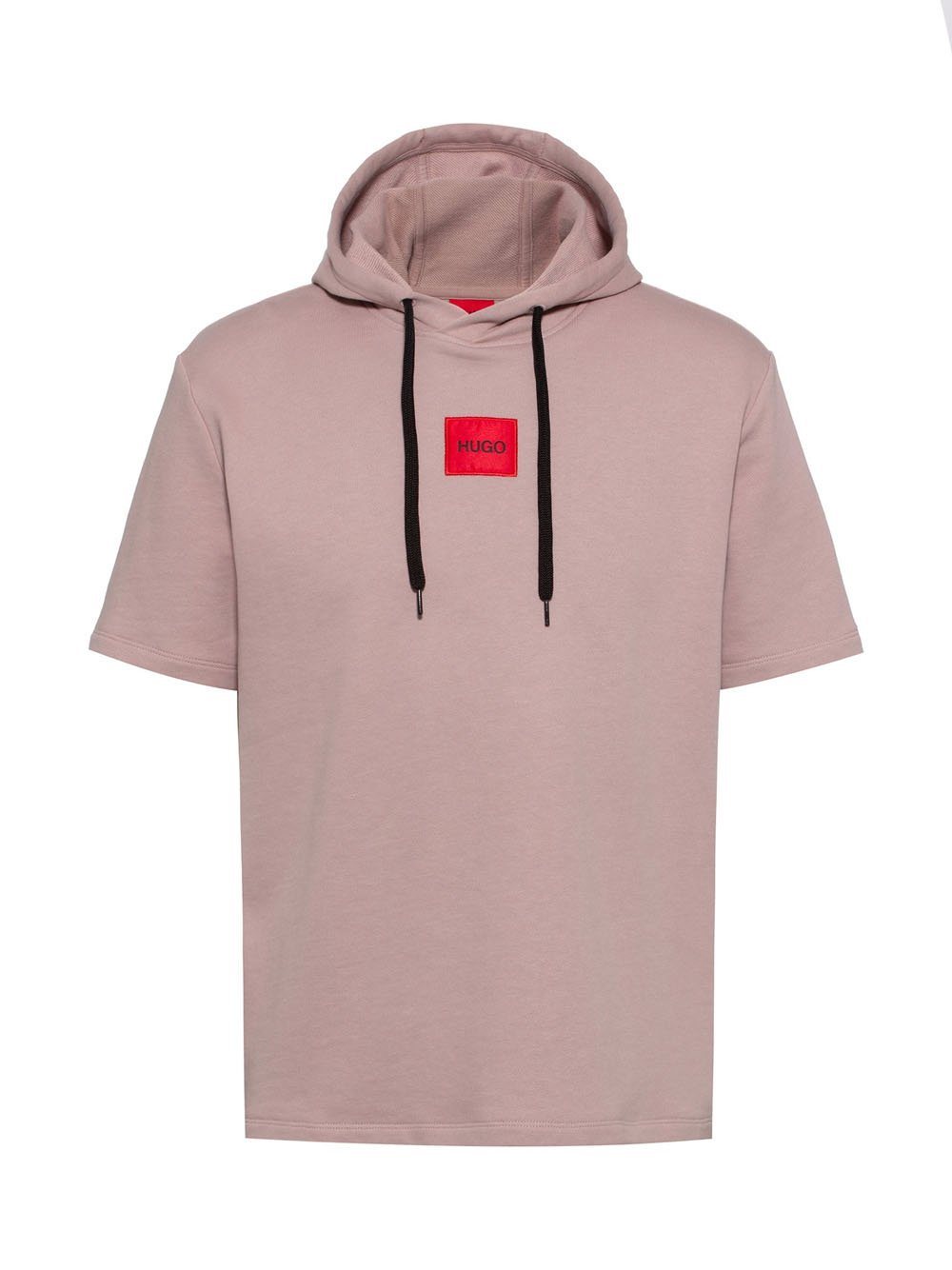 A hooded sweatshirt by HUGO Menswear, created in French terry woven from super-soft cotton. Designed with short sleeves and a regular fit, this pull-on style is detailed with a logo patch in signature red at the chest. Drawcords at the hood seal off the sporty aesthetic of this piece. Purchasing this item helps HUGO to support the Cotton made in Africa initiative.