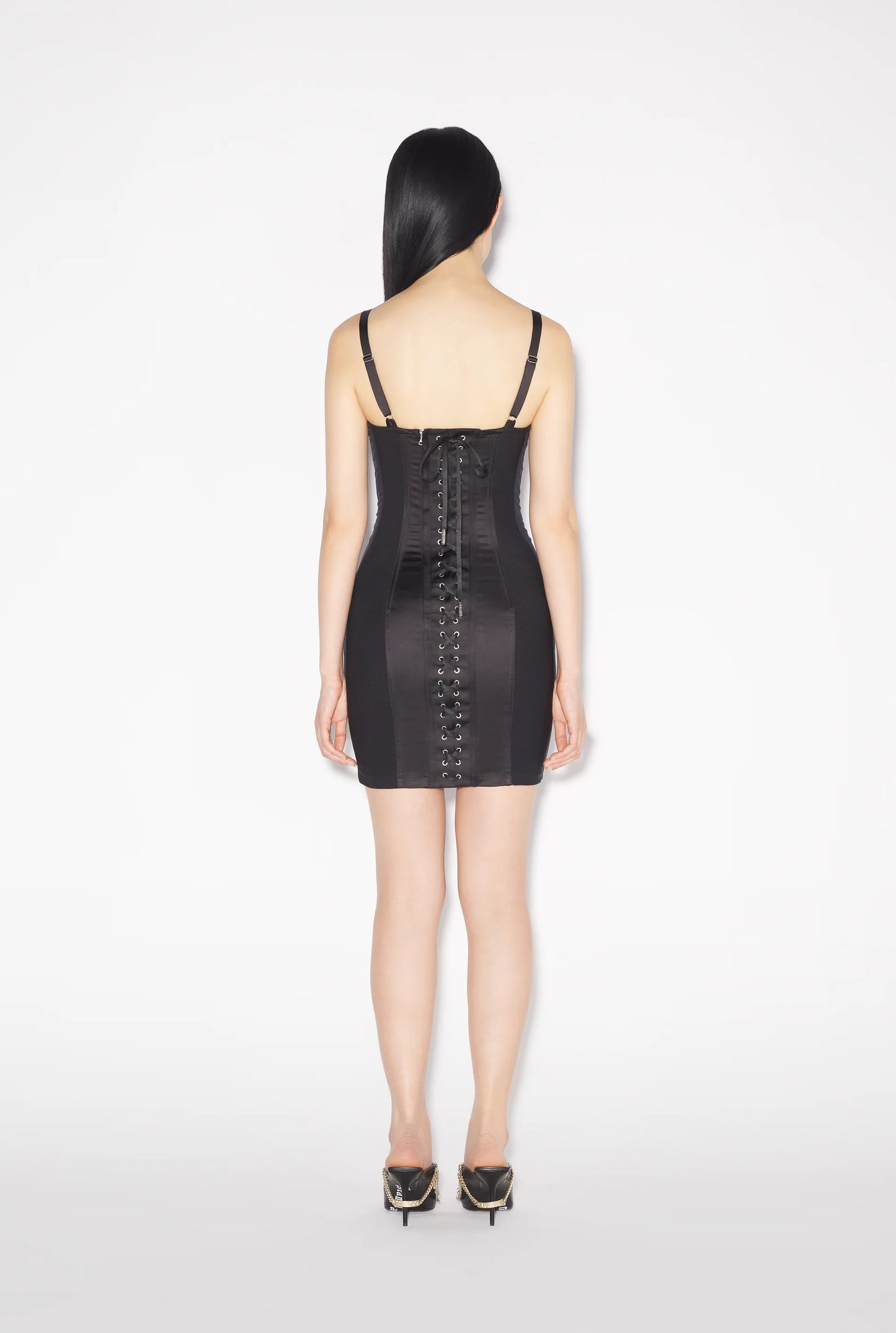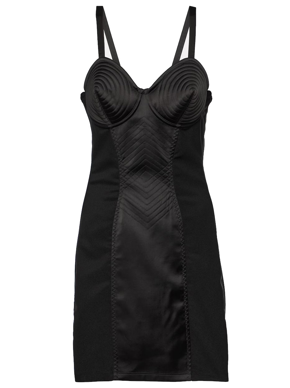 The pink Iconic minidress is named after two of Jean Paul Gaultier's most celebrated design elements: corsetry lacing and cone cups – the latter nod to the iconic bra worn by Madonna in 1990.