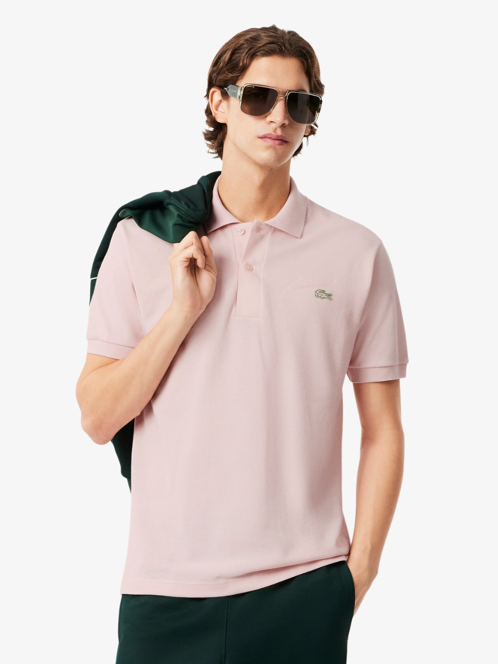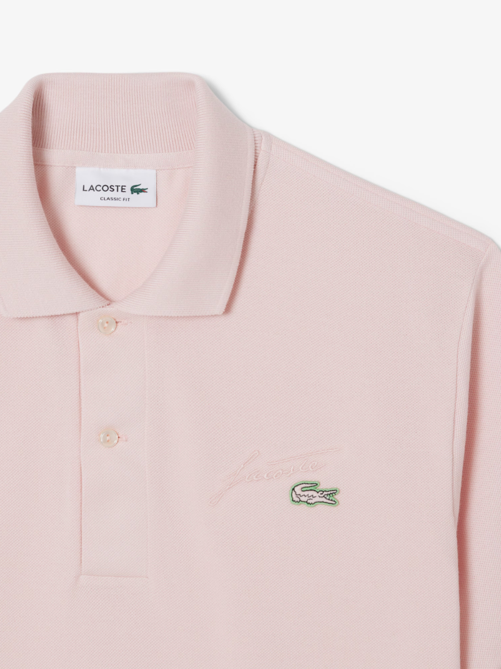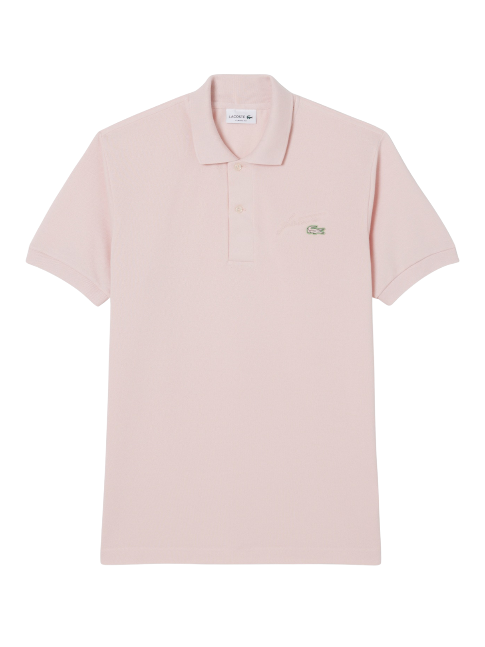- Embroidered René Lacoste signature on bust