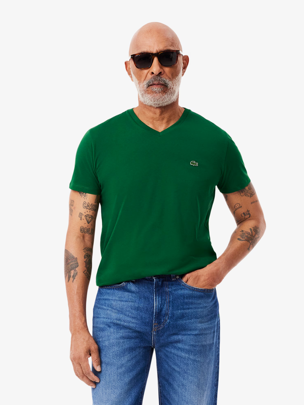 This best-selling V-neck tee from Lacoste is a true menswear essential. Made from premium cotton Pima, a lightweight, hardwearing fabric with a luxurious finish. An elegant, timeless design with sophisticated touches, including an embroidered crocodile.