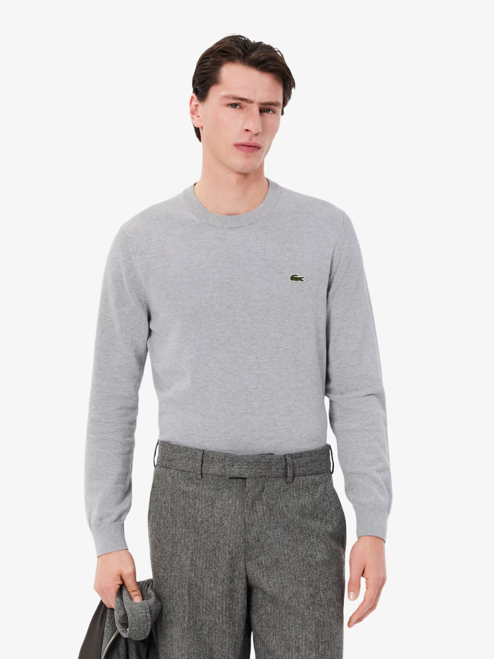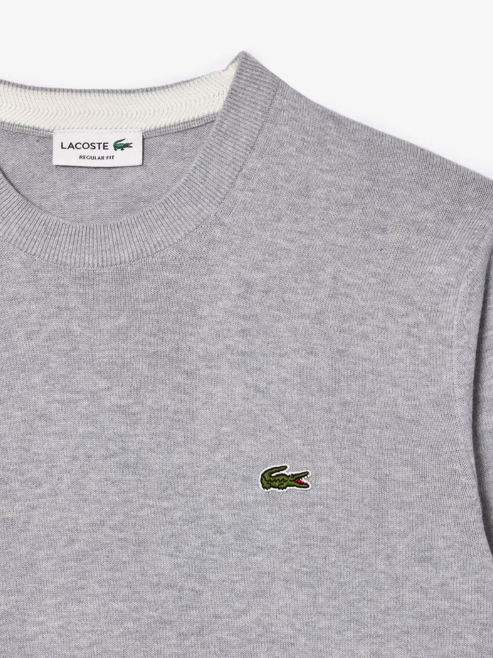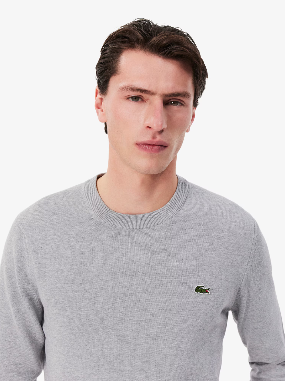 LACOSTE Monochrome Crew Neck Cotton Sweater Grey
