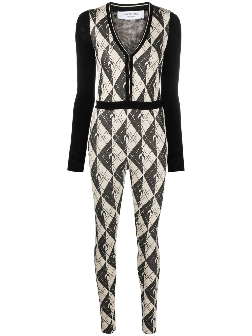 MARINE SERRE WOMEN Knit Catsuit Black/White