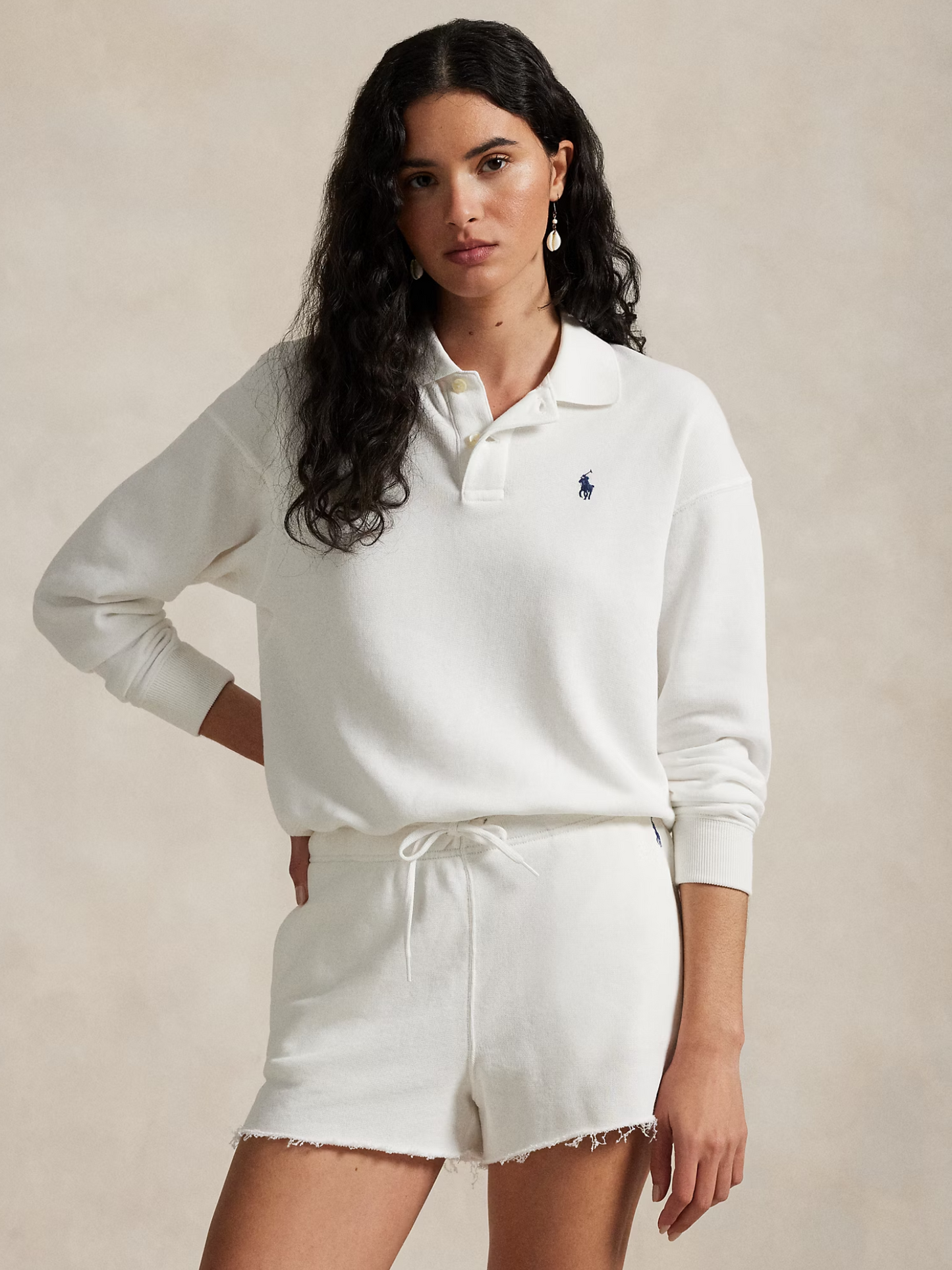 RALPH LAUREN WOMEN Polo-Collar Long-sleeved Sweatshirt White