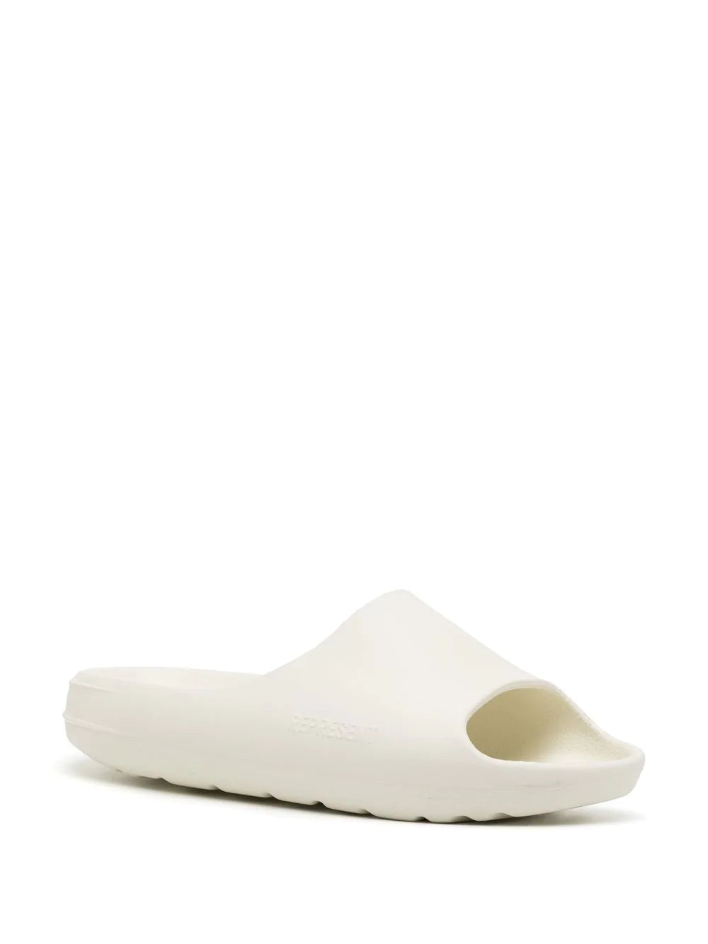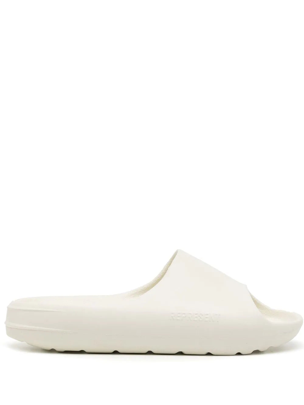 REPRESENT offers a relaxed aesthetic with these white-hued sliders, merely decorated with an internal embossed logo and finished with a ridged rubber sole.
