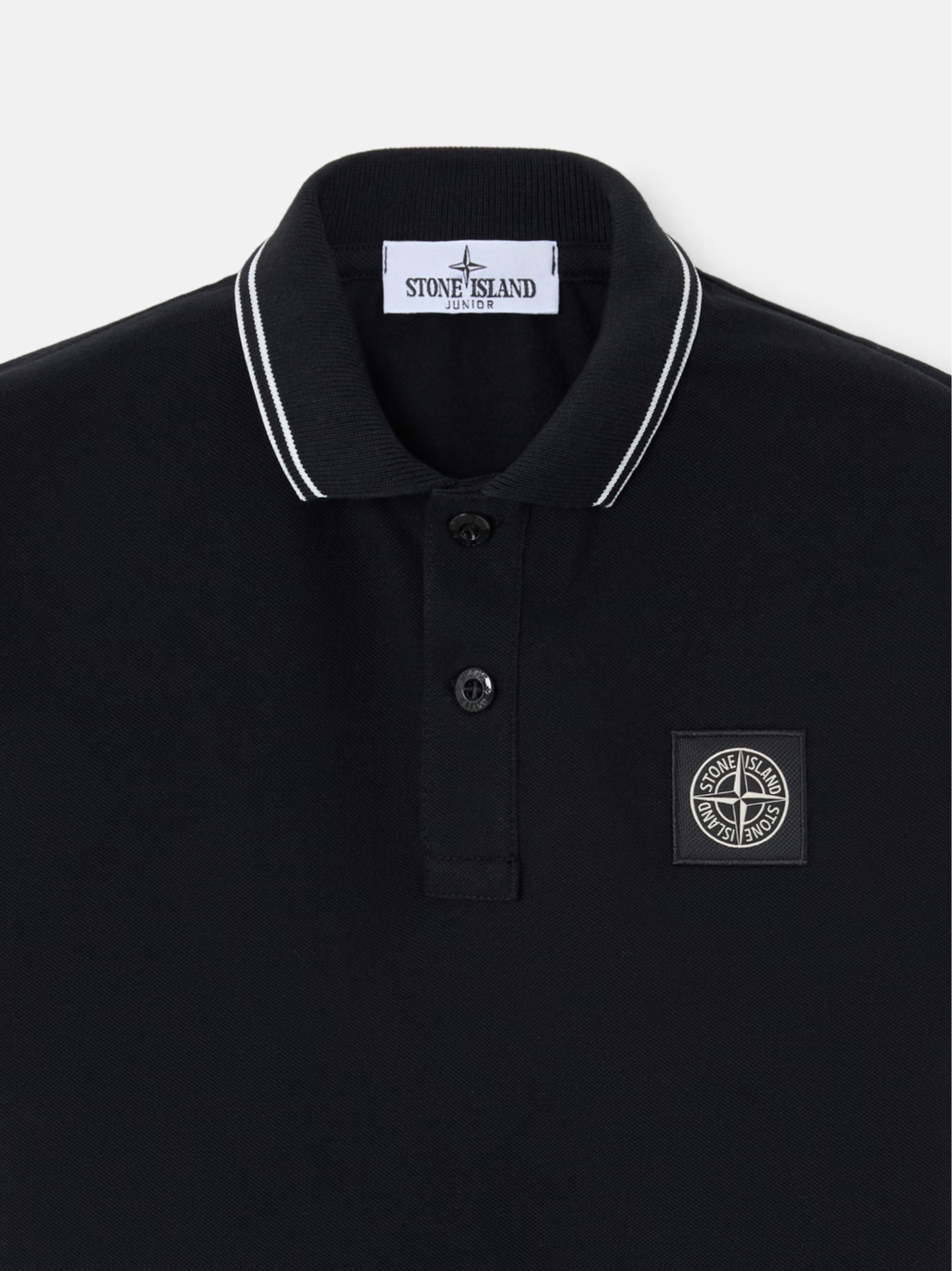 STONE ISLAND KIDS Boys Compass Motif Polo Shirt Black