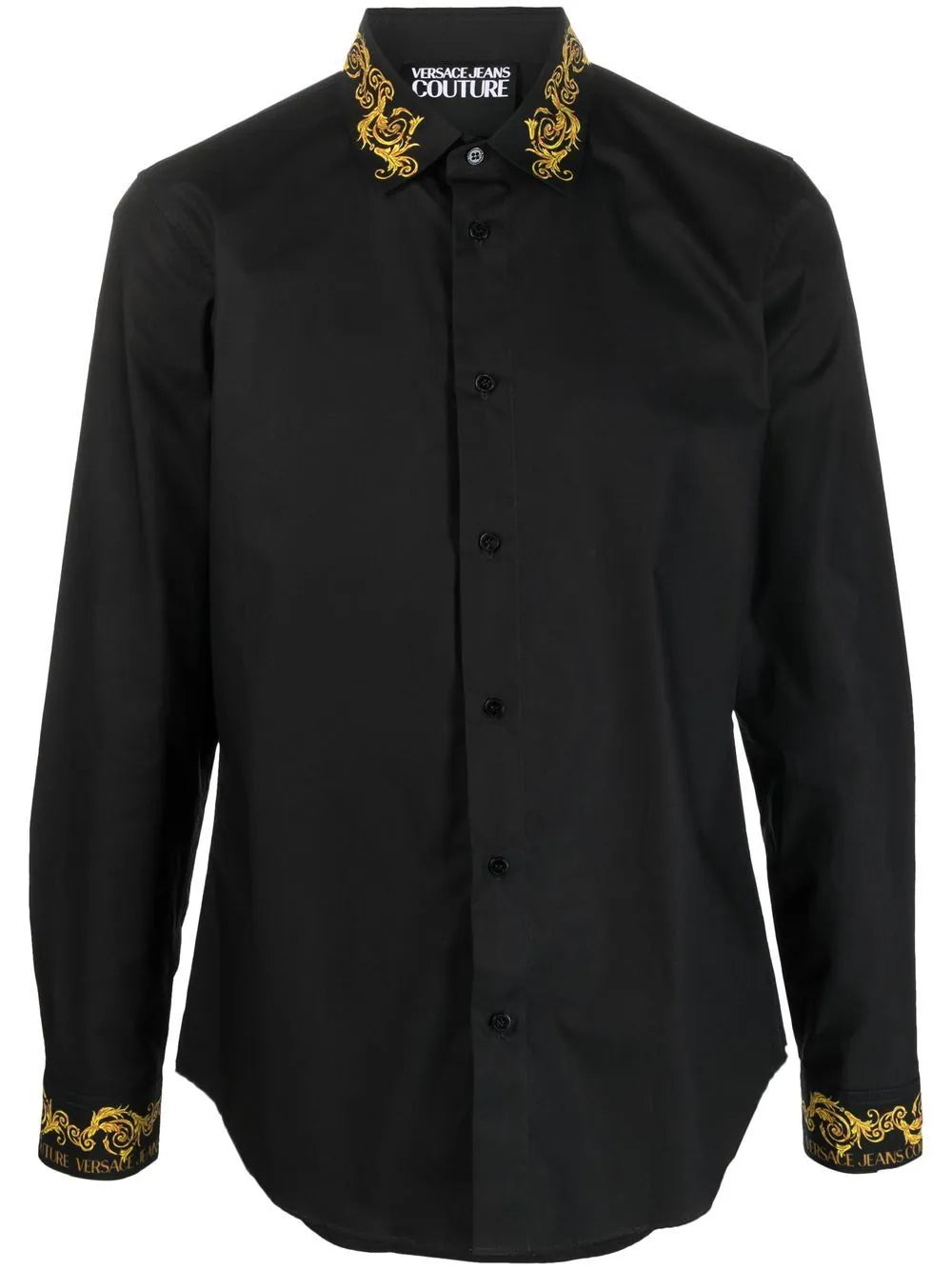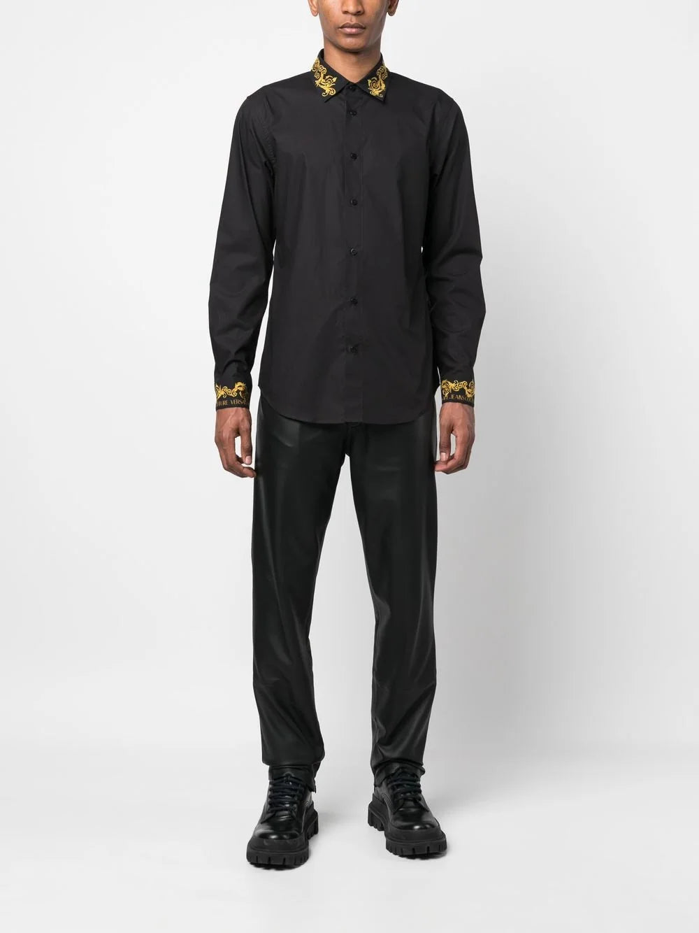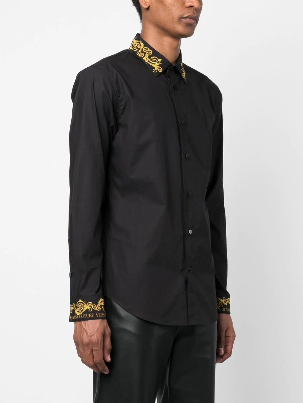 VERSACE MEN Panel Baroque Pattern Print Shirt Black/Gold