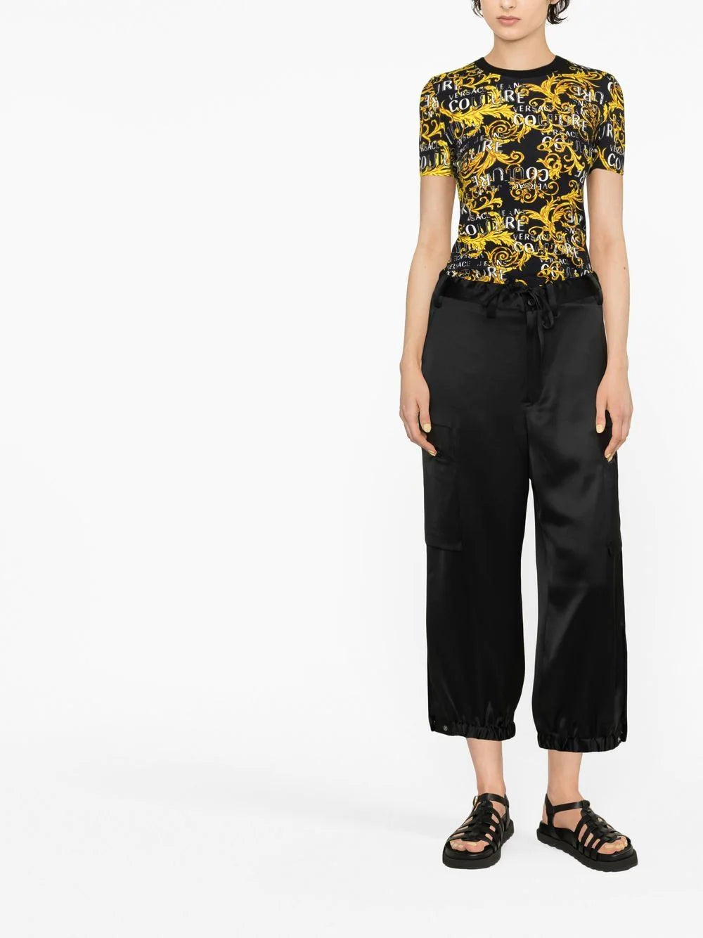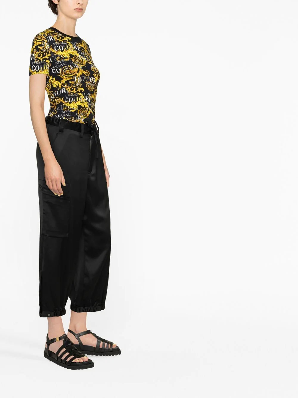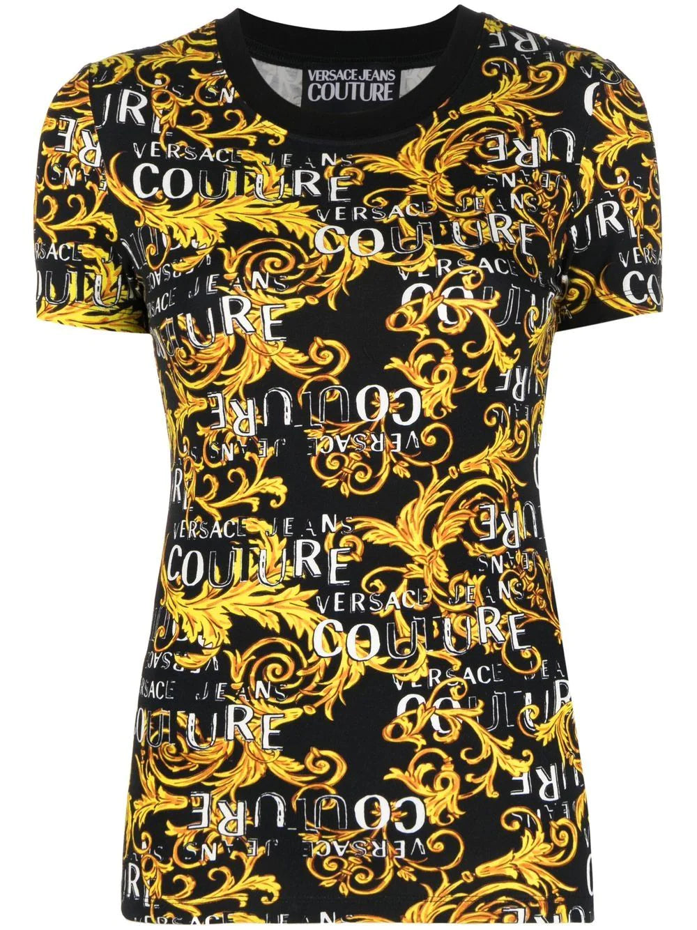 VERSACE WOMEN Baroque Print Cotton T-Shirt Black/Gold