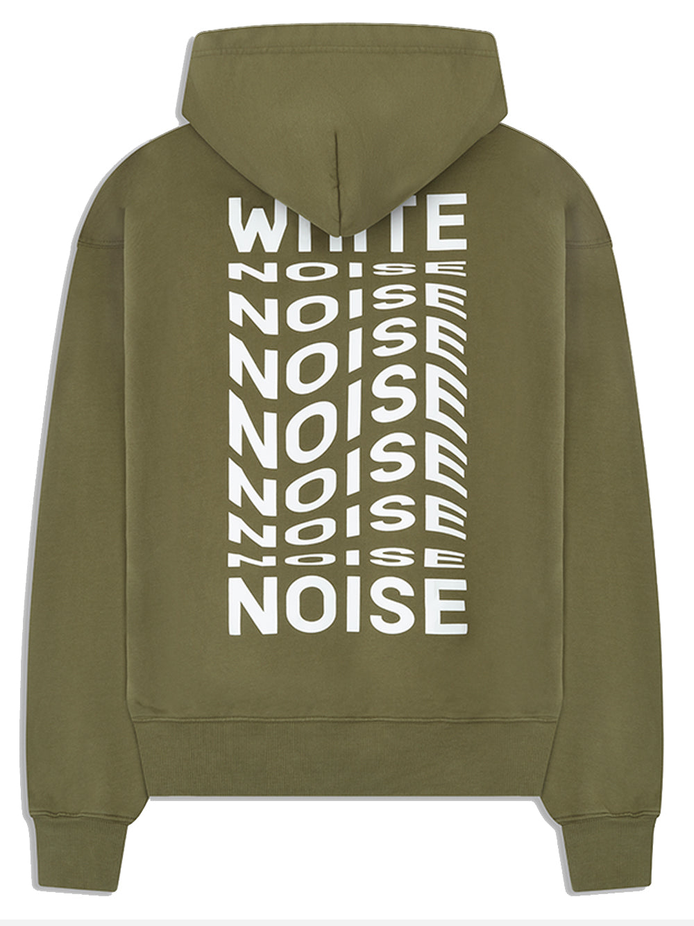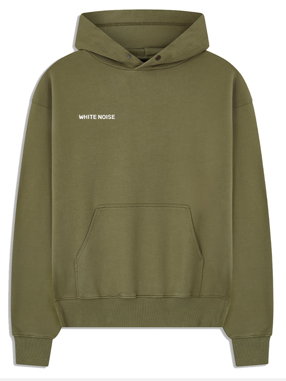 WHITE NOISE Branded Graphic Cotton Hoodie Khaki